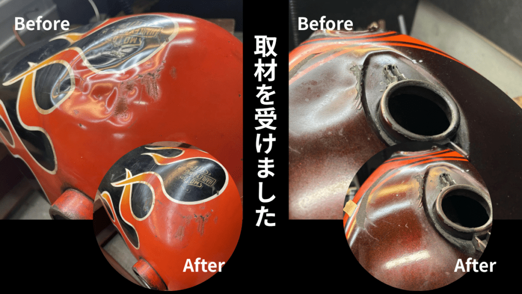 バイクタンクの凹を直す方法は、大きく「バイクタンクの交換」「板金or パテ埋め→再塗装」、そして、「デントリペア」がありますが、 オリジナルの塗装・ステッカーを守... -